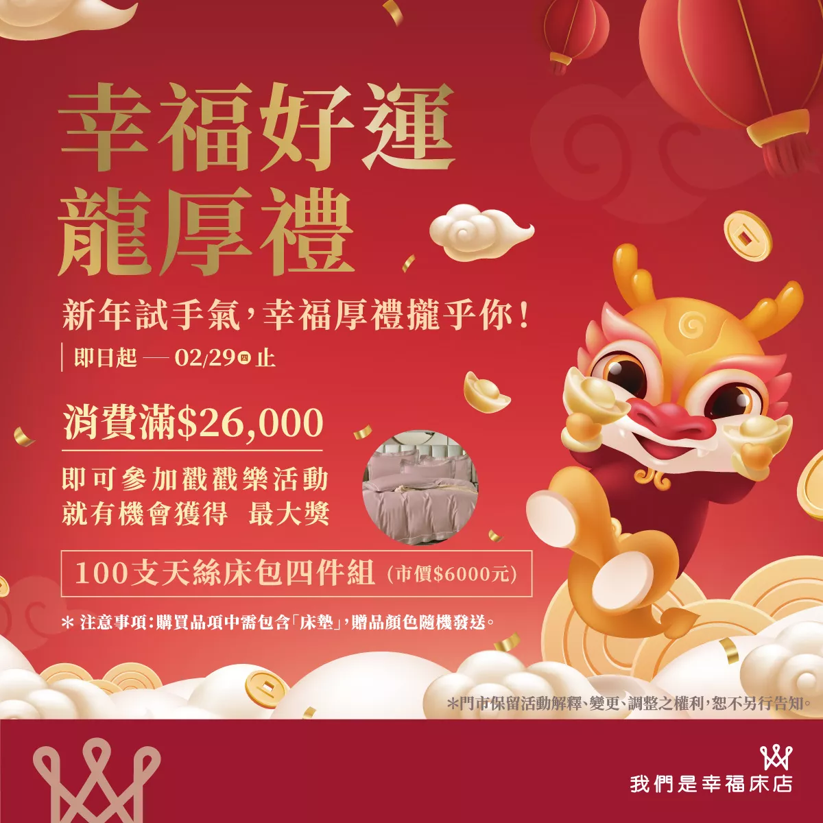 幸福龍年特惠!購床墊滿額送價值6000元大獎