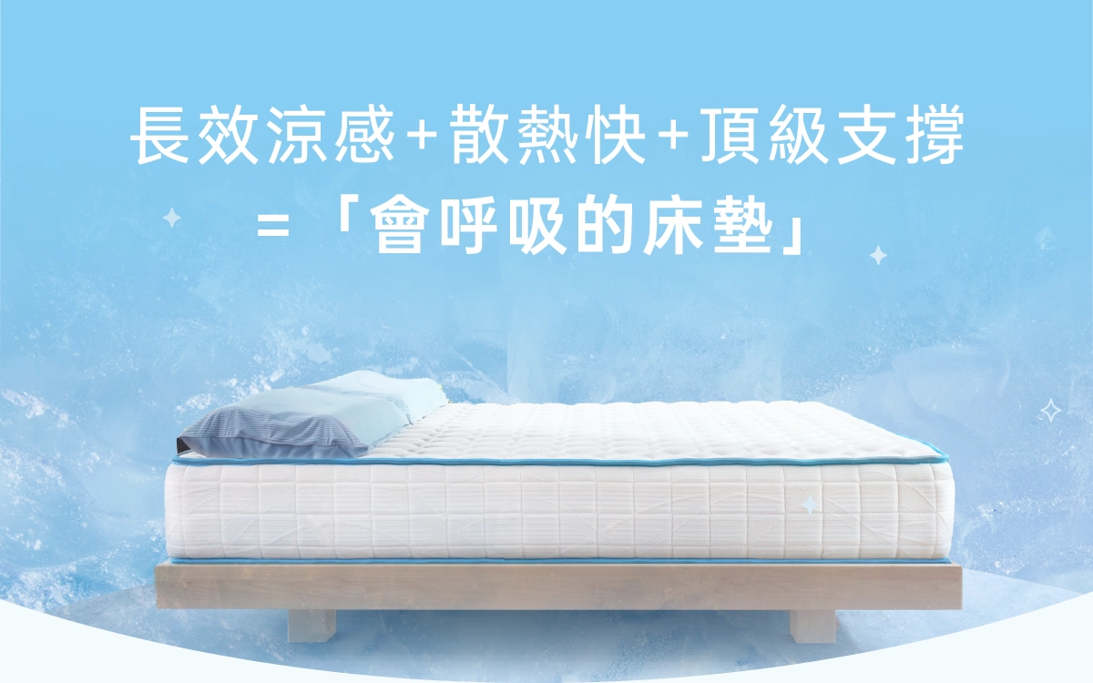 選涼感床墊要看三點:材質、支撐、透氣性。建議選用原裝的日本急凍紗表層,能瞬間降溫又不悶熱;內層搭配獨立筒或高回彈親水棉,支撐穩定不塌陷,整夜散熱效果更持久。當然選擇有兩面可睡設計的床墊更好,一整年都能依照氣候的變化使用。想要好睡又涼爽,就選為台灣氣候設計的涼感床墊。